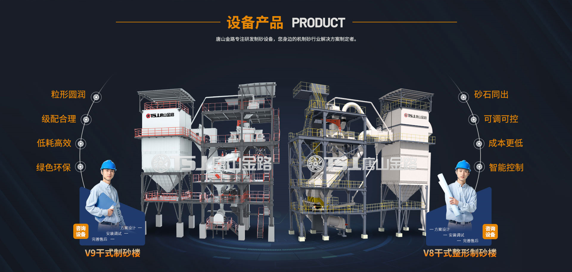 唐山金路作為一家集研發(fā)、生產(chǎn)、銷售、服務(wù)于一體的制砂機(jī)械設(shè)備企業(yè),一直致力于環(huán)保型破碎制砂設(shè)備的研發(fā)與生產(chǎn),現(xiàn)建有年產(chǎn)100萬(wàn)噸的機(jī)制砂生產(chǎn)實(shí)踐基地。公司自主研發(fā)的V8干式整形制砂樓、V9干式制砂樓,具有綠色環(huán)保、能耗低產(chǎn)量高、智能控制等特點(diǎn),產(chǎn)出的機(jī)制砂級(jí)配合理、粒形圓潤(rùn),是制砂生產(chǎn)企業(yè)的理想產(chǎn)品。
